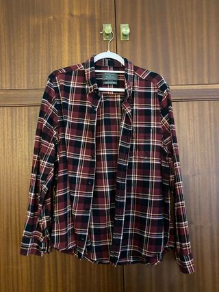 Camisa de algodón con estampado de cuadros, en talla XL. Prácticamente sin uso. - Material: 100% Algodón. - Diseño: Cuadros en tonos burdeos, negro y blanco.