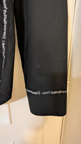 Camisa de manga larga con un diseño moderno y llamativo. - Detalle de texto Liberté Fraternité Desigualité en la manga. - Bolsillo en el pecho con logo de la marca. - Muy buen estado - 100% algodón