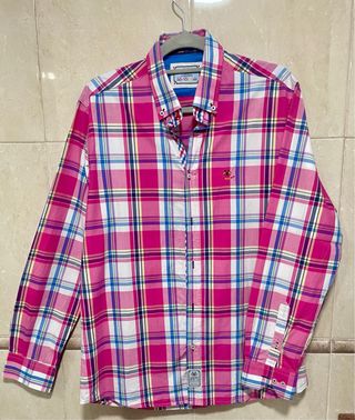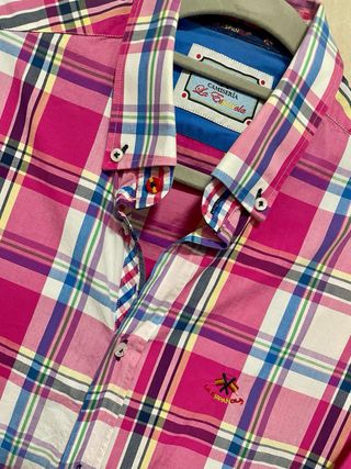 • Estado: puesta una vez. • Diseño: Manga larga con estampado de cuadros (plaid) en tonos fucsia, azul, amarillo y blanco. • Con botones de repuesto originales. • Cuello con botones. • Puños con forro de micro-cuadros para usar con vuelta. • Logo bordado en el pecho. • Corte: Ajuste cómodo y moderno. • Composición: 100% algodón. • Talla 4. Medidas aproximadas: largo 75 cm., largo manga: 63 cm. y hombros 46 cm. #LaEspañola #CamisaHombre #ModaHombre #Cuadros #EstiloCasual #RopaHombre #CamisaCuadros #MensShirt #PlaidShirt #CheckeredShirt #ColorfulStyle #PreppyStyle #SmartCasual #DesignerShirt #MensWear #ChemiseHomme