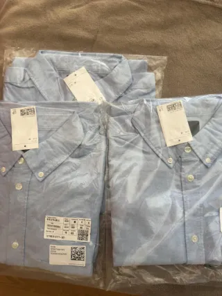 Lote de cuatro camisas H&M nuevas, sin estrenar. Perfectas para cualquier ocasión. - Camisas de manga larga. - Cuello abotonado. - Tejido de algodón. - Talla M (equivalente a 38-40 / 48-50). 3 CELESTES Y 1 BEIGE