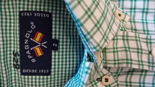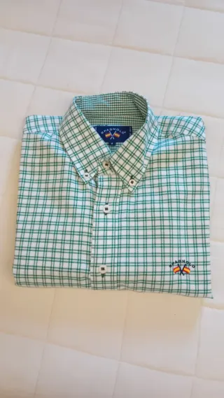 Camisa de cuadros verdes de la marca SPAGNOLO. - Diseño clásico con cuello abotonado. - Detalle bordado en el pecho. No tiene ni un roce de uso.