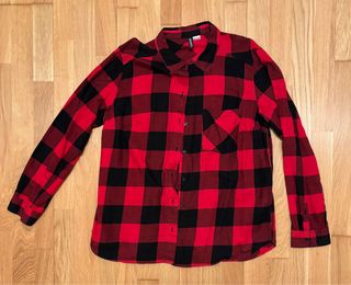 Camisa de cuadros clásica de H&M. - Diseño a cuadros en rojo y negro. - Cuello camisero. - Bolsillo en el pecho.