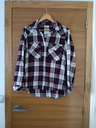 Camisa de cuadros de Zara. - Diseño de cuadros en tonos rojos, blancos y azul marino. - Dos bolsillos en la parte delantera. - Manga larga.