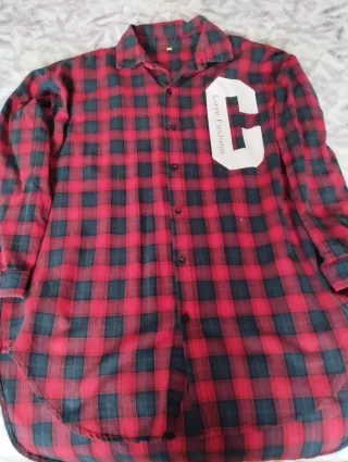 Camisa de cuadros con un diseño moderno. - Estampado a cuadros. - Detalle de letra 'C' y texto 'Love Fashion' en blanco.