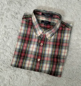 Camisa de manga larga con un diseño de cuadros llamativo. - Cuello con botones. - Estampado de cuadros en rojo, blanco, azul y verde. - Logo de Gant bordado en el bolsillo.