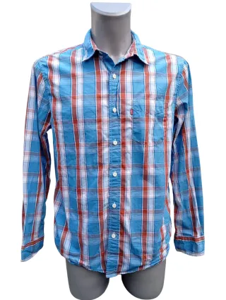 Camisa manga larga cuadros azul y marrón • Levi's • Talla L ⚡ Estado: muy bueno, tiene un pequeño desgarro en la espalda (ver foto) 📐 Medidas en plano (en cm): - largo total: 75 - hombros: 49 - de axila a axila: 61 - mangas: 68 • Material: 100% algodón 🔝 Más ropa en mi perfil ❤️ Sígueme para no perderte artículos nuevos *Todas las prendas son de segunda mano, por lo que pueden presentar desgastes provocados por el paso del tiempo. REF TM0528