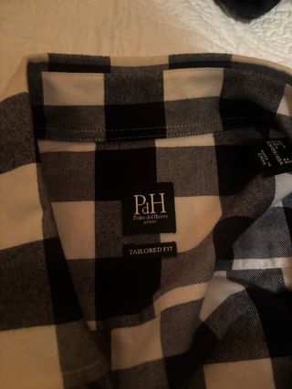 Camisa de cuadros de manga larga de la marca Pedro del Hierro. - Diseño clásico en blanco y negro. - Cuello con botones. - Un bolsillo en el pecho. Entrego en mano en Las Musas.No envio.Sin etiqueta pero esta a estrenar