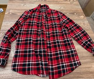 Camisa de caballero con estampado de cuadros. Con un género un poco gordito que es bueno para este tiempo que estamos es súper moderna y actual comprada en la planta joven del corte inglés la marca east está sin estrenar - Diseño clásico a cuadros en tonos verdes, rojos y blancos. - Cuello con botones. - Manga larga.
