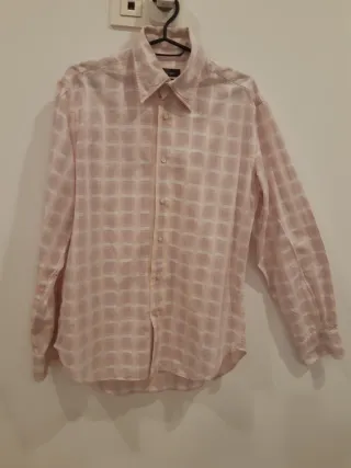 Camisa de hombre de manga larga con estampado de cuadros. Talla 48 italiana.