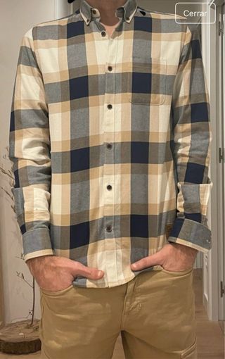 Precio original 65 euros. Camisa de cuadros para hombre, ideal para el invierno. Es una prenda nueva. - Diseño a cuadros en tonos marrones y azules. - Cuello abotonado.