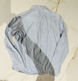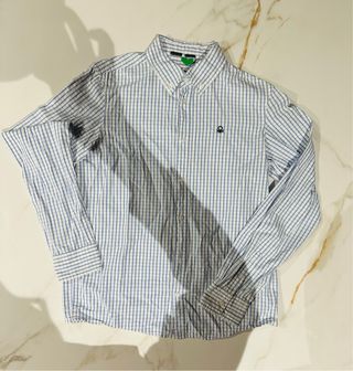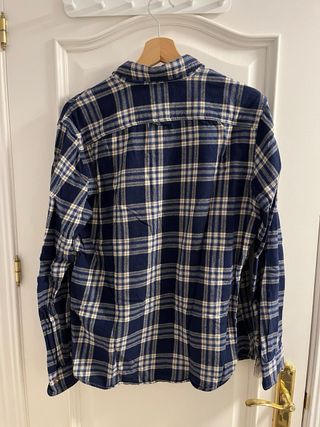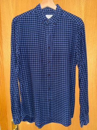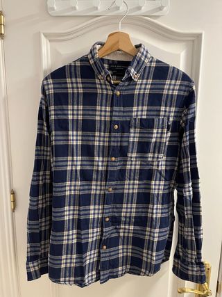 Camisa de cuadros de manga larga. - Cuadros en tonos azules y oscuros. - Cuello con botones. Como nueva