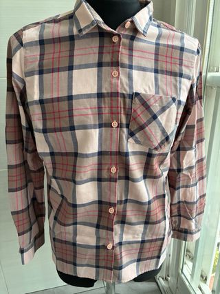 Camisa de cuadros con un diseño moderno y cómodo. - Cuadros en tonos beige, azul marino y rosa. - Bolsillo en el pecho. - Cierre de botones.