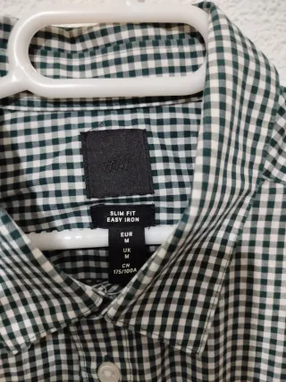 Camisa de vestir H&M con un clásico estampado de cuadros. - Corte Slim Fit. - Fácil de planchar. - Diseño en verde y blanco.