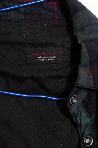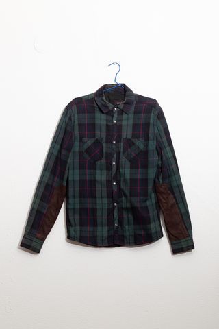 Camisa de Zara Man con un diseño a cuadros y coderas. - Diseño a cuadros en tonos verdes y burdeos. - Coderas de material diferente para un toque distintivo. - Cierre de botones. - Dos bolsillos en el pecho.