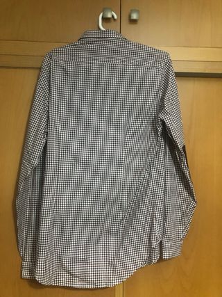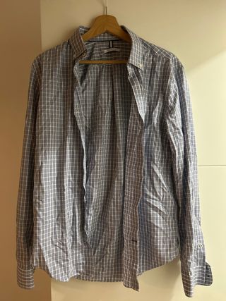 Camisa de manga larga con un clásico estampado de cuadros. - Diseño de cuadros azul y blanco. - Cuello camisero. - Cierre de botones. Con una pequeña mancha abajo de la camisa