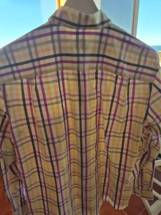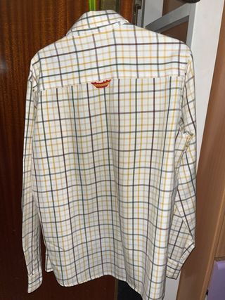 Camisa de manga larga con un diseño de cuadros llamativo. - Talla s sirve para sx también - Cuello camisero. - Cierre de botones. - Dos bolsillos en el pecho con solapa y botón. - Puños abotonados. Se puede poner manga pirata REBAJADA