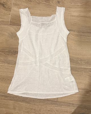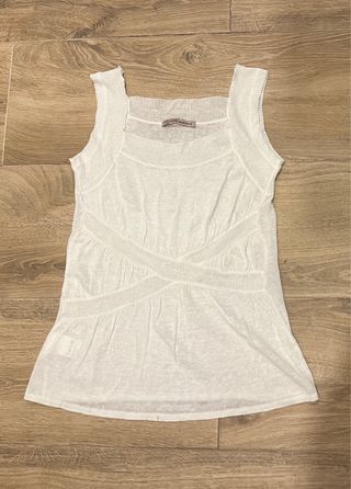 Este top de hilo es una prenda versátil y cómoda. - Diseño sin mangas. - Escote cuadrado. - Detalle de fruncido cruzado en el torso. - Tejido ligero y transpirable.