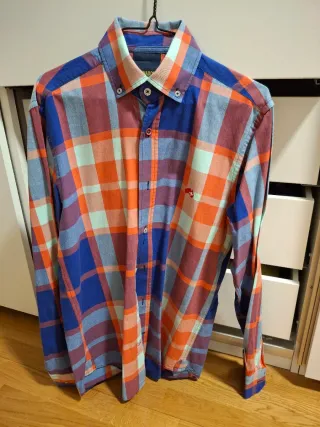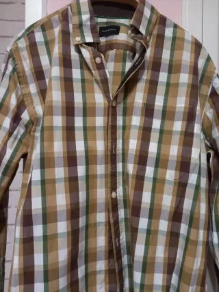 Camisa de manga larga con un diseño de cuadros clásico. - Cuello camisero. - Cierre de botones. - Tejido ligero. Tiene un ligero desgaste en el cuello, ver fotos por favor. Vendo via wallapop y entrego en mano. El envio irá en una caja y relleno de papel burbuja, para que no suceda ningún imprevisto.