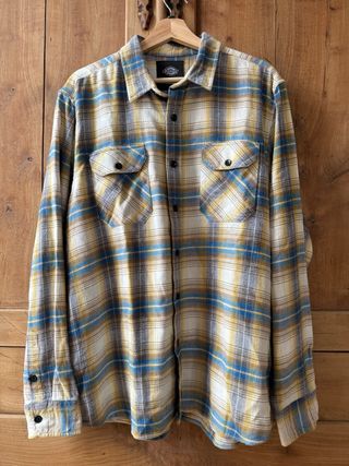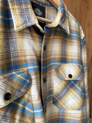 Camisa de Dickies con un diseño de cuadros llamativo. Perfecta para un estilo casual. - Cuadros en tonos beige, azul y gris. - Dos bolsillos en el pecho con botón. - Cierre de botones en la parte frontal.