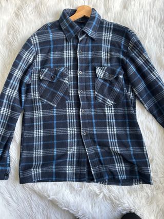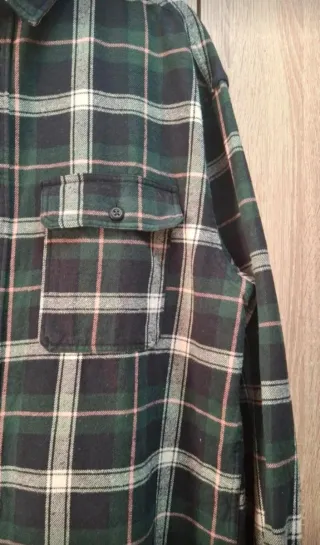Camisa de franela con un diseño a cuadros clásico. Es un L holgada, hace 73 cm de largo y 106de ancho en la zona de la barriga. Se hacen envíos solo por INPOST, por Correos no. - Cuello camisero. - Cierre de botones. - Dos bolsillos en el pecho con solapa. - Puños abotonados.