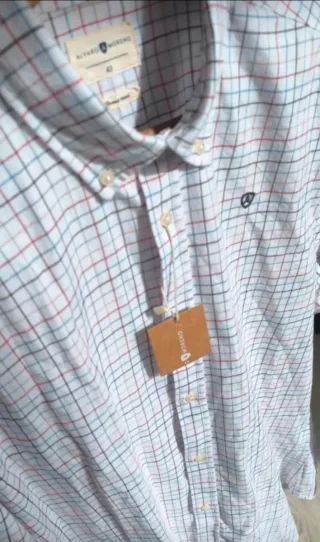 Estado: Nueva a estrenar (10/10). Estampado de cuadros clásicos en tonos azul, rojo y beige sobre fondo blanco. Tejido: 100% Algodón de tacto suave de franela. Corte: Regular Fit / Clásico (Talla 43). 📏 Medidas: Largo total: 70 cm Pecho (axila a axila): 60 cm Manga (desde el hombro): 65 cm