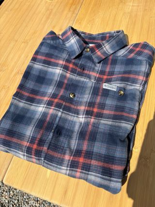 Camisa de franela Columbia con un diseño a cuadros clásico. - Patrón a cuadros en tonos azules y rojos. - Logo de Columbia en el bolsillo del pecho. - Cierre de botones. - Tejido suave y cómodo.