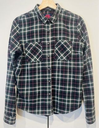 Camisa de franela a cuadros de Primark, sin estrenar. - Diseño a cuadros en gris y blanco. - Talla S. - Fabricada en Bangladesh.