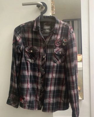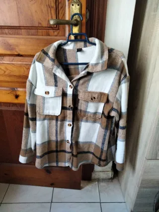 Camisa de franela con un diseño a cuadros. - Cuello camisero. - Cierre de botones. - Mangas largas. Queda oversize da hasta una M