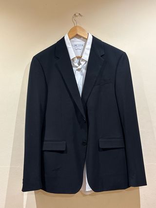 Traje elegante de la marca Zara. - Americana elegante con cierre de dos botones con dos bolsillos interiores - Pantalón con cierre de dos botones -Camisa blanca perfecta para el traje - Utilizado solo una vez 🆕 -Talla M todo el conjunto - Muy buena calidad ✅ Cualquier pregunta no dude en escribirme 😁💬