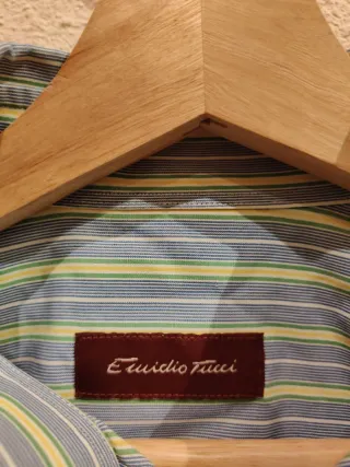 Camisa de manga larga para hombre de la marca Emidio Tucci. - Diseño de rayas verticales. - Cuello tipo button-down. - Bolsillo en el pecho. Talla m ,muy buen estado,45 cm de hombro a hombro, largo 68 cm
