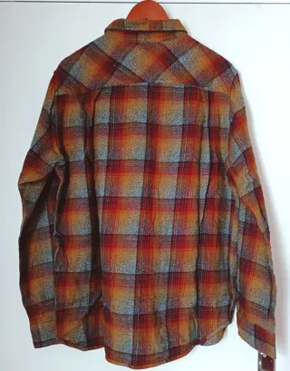 Camisa de cuadros de la marca Losser Machine. Presenta un diseño llamativo con tonos naranjas y rojos. - Cuello camisero. - Dos bolsillos en el pecho con solapa. - Cierre de botones. - Puños abotonados.