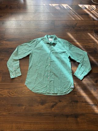 Camisa de la marca El Ganso, nueva a estrenar. La camisa está en su bolsa sin abrir. El resto de fotos corresponden a otra camisa idéntica que compré y ya uso. - Color verde. - Talla 38. - Material: 100% algodón reciclado.