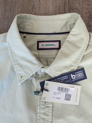 Camisa de vestir de la marca El Ganso, con un diseño clásico y elegante. Perfecta para cualquier ocasión. Sin estrenar. - Color verde claro. - Talla L. - Material de alta calidad. - Etiqueta original incluida.