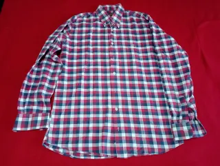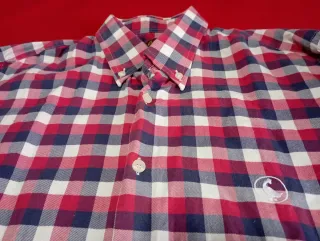 Camisa de manga larga con un diseño de rayas verticales en tonos rojos y azules sobre fondo blanco. Tejido franela. Talla 37 (M aprox. El Ganso talla en rangos más precisos que S, M, etc). Fabricada en Portugal (antes de que mudaran las camisas a China). Tiene un par de marquitas neutras en cuello y manga que vinieron de fábrica (última foto), apenas imperceptibles en la realidad. La usé poco, el tejido está muy bien conservado. Buena combinación para otoño/invierno con jersey azul marino. - Diseño de rayas verticales. - Cuello button-down. - Logo bordado en el pecho.