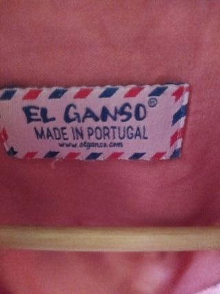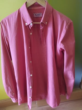 Camisa “El Ganso”. Tela de Oxford y color rosa fuerte sin llegar a ser fucsia. Canesú forrado con tela de rayas azul y blanca, según fotografia. Talla 39. Perfecta, sin taras.