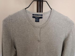 Cárdigan de GANT en color gris, presenta un diseño de corte normal, botones en la parte delantera y detalles de canalé en los puños y el bajo. Cuello redondo, un discreto logo de GANT bordado en la manga. Es una prenda clásica y atemporal, perfecta para llevar encima de una camisa o camiseta. Muy poco uso Composición: 90% lana, 10% cachemira Medidas: Largo 67 cm; Ancho espalda (hombros) 36 cm; Ancho espalda (sisa) 52 cm; Largo de manga 69 cm Talla XL LAS FOTOS FORMAN PARTE DE LA DESCRIPCIÓN Precio 45€ Todos mis artículos están cuidadosamente seleccionados y están en excelentes condiciones. Comprobar medidas, antes de compr