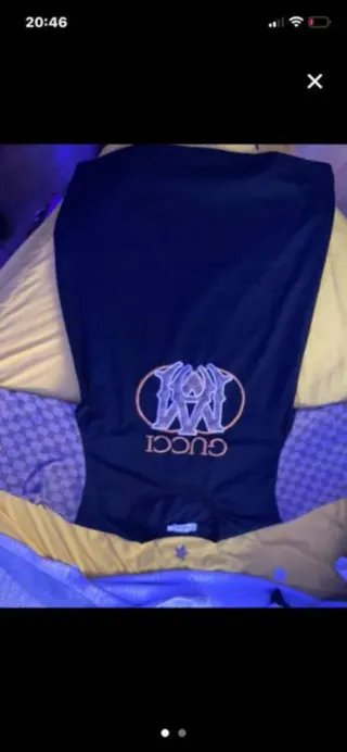 Cada una 30 o 40€ y las tres 70€ Prenda de vestir de la marca Gucci en color negro. Presenta un diseño distintivo en la parte frontal. - Logo de la marca bordado. - Diseño circular con letras entrelazadas.