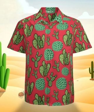 Camisa hawaiana fresca de verano con estampado de cactus de colores rojo y verde. Es una talla L, pero es muy grande y es más una XL Está nueva. La vendo porqué me va grande y es un regalo que no puedo devolver.