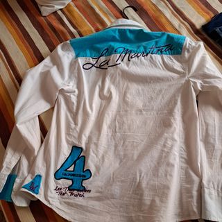 Camisa de La Martina, color azul y blanco. Talla M. El cuello es desmontable y se puede convertir en cuello Mao. Totalmente nueva.