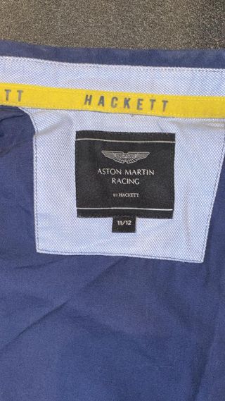¡EN REBAJAS! Camisa Hackett Aston Martin Racing en muy buen estado, para niño. Talla 11/12. Se vende conjuntamente con las otras nueve prendas que anuncio, en un lote único e indivisible de camisas, cazadoras y chaquetas, para niños de 7 a 14 años. El precio del lote completo es de 48€.