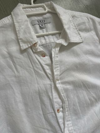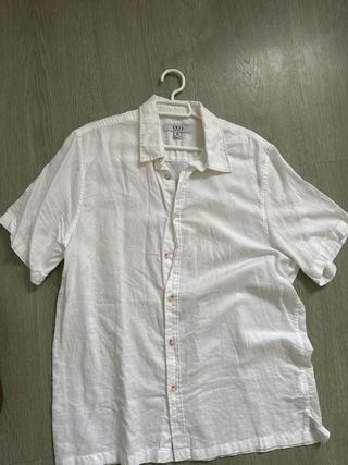 Camisa blanca de Pull&Bear, ideal para cualquier ocasión. - Diseño clásico con cuello camisero en pico - Cierre de botones. - Mangas corta con puño. - Bajo asimétrico con aberturas laterales. -Talla M amplia