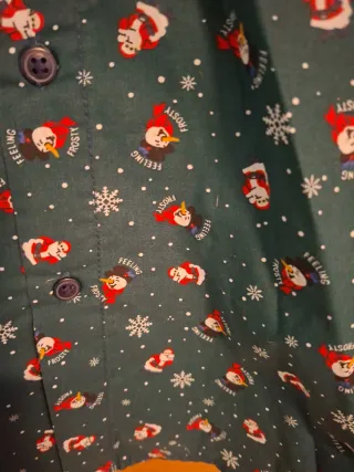 Camisa con estampado navideño de C&A. - Diseño con figuras de Papá Noel y copos de nieve. - Manga larga.