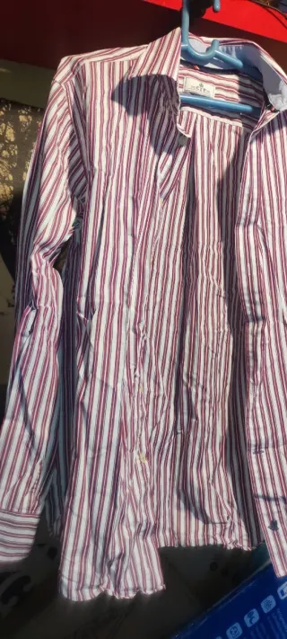Camisa de manga larga con un diseño de rayas verticales. Cortefiel. Talla M. Sólo arrugada. Buen estado. - Cuello camisero. - Cierre de botones. - Un bolsillo en el pecho. Más artículos escribiendo algeral en búsqueda general. Se hacen lotes en conjunto con los otros perfiles.