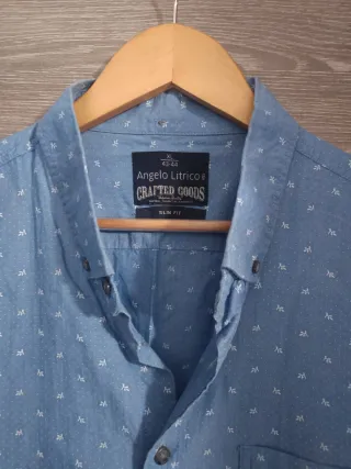 Camisa de manga larga con un discreto estampado de topos sobre fondo azul. Talla L- XL de C&A - Cuello abotonado. - Bolsillo en el pecho. - Diseño casual y versátil. Poco usada, en perfectas condiciones 😊