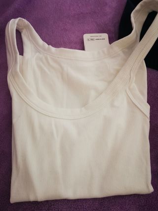 Blusa blanca, sin manga. De arcilla. Marca Shein (Dazy). Talla XL. Con etiqueta sin estrenar. La tela es muy elástica y se pega mucho al cuerpo.