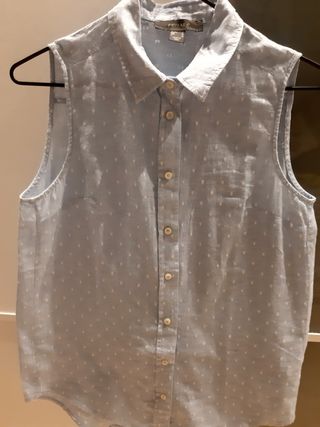 Camisa color celeste mujer sin mangas con pintitas blancas de hilo. Talla 38, como nueva, en perfecto estado. Primark