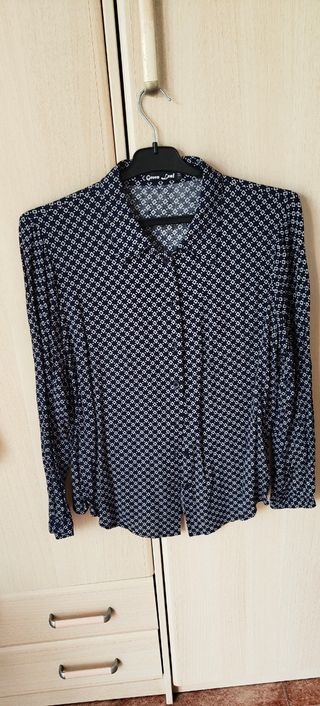 camisa manga larga color marino con detalles pequeños en blanco de la marca pull & Bear como nueva, muy poco uso