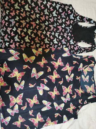 usada en dos ocasiones (esta como nueva) camisa blanca de flores en las mangas tiene goma es algo transparente en las mangas y tripa (no mucho) no es pegada, sino suelta tallaM