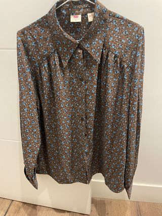 Camisa de manga larga con un bonito estampado floral en tonos marrones y azules. Presenta un diseño amplio y suelto, ideal para un estilo casual. - Cuello camisero clásico. - Cierre de botones en la parte delantera. - Puños abotonados en las mangas.