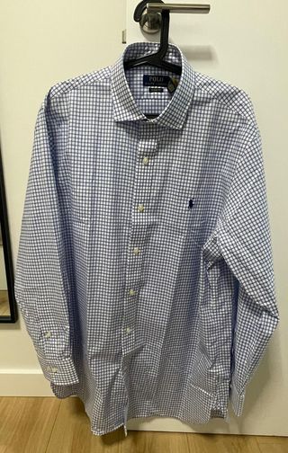 Camisa Polo Ralph Lauren original, totalmente nueva con etiquetas. Modelo Classic Fit de cuadros (Gingham) en azul y blanco. Con tecnología "Purepress" (resistente a las arrugas). Talla L (Cuello 16 ½ | Manga 32-33). 🎁 Incluye caja original y protecciones, perfecta para regalar. La vendo porque fue un regalo del que no conservo el ticket para cambiarla. Nunca usada. 💰 Acepto Bizum. ¡Cualquier duda pregúntame!